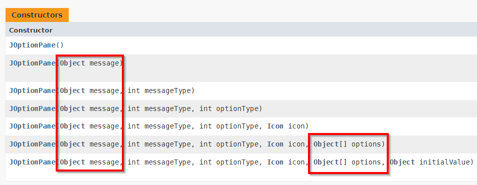 โดยหลักการคือเราส่ง array ของ component ที่ต้องการแสดงเข้าไปใน Object[] options array ตัวนี้