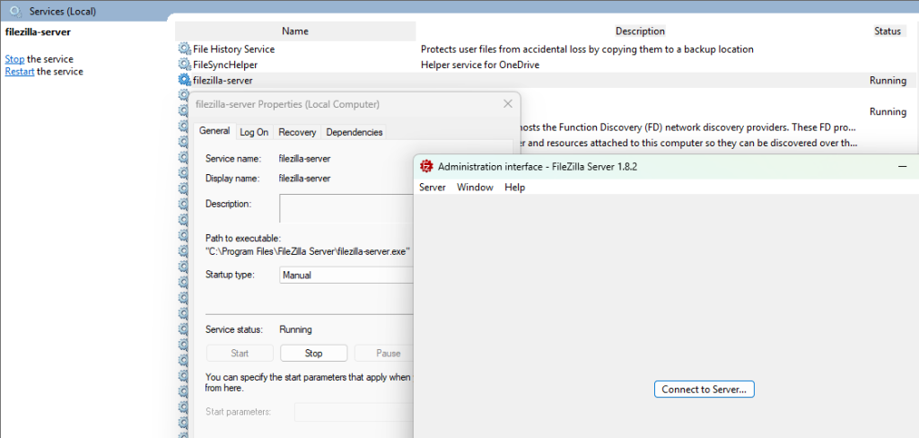 เปิดใช้งาน services -> Filezilla-server