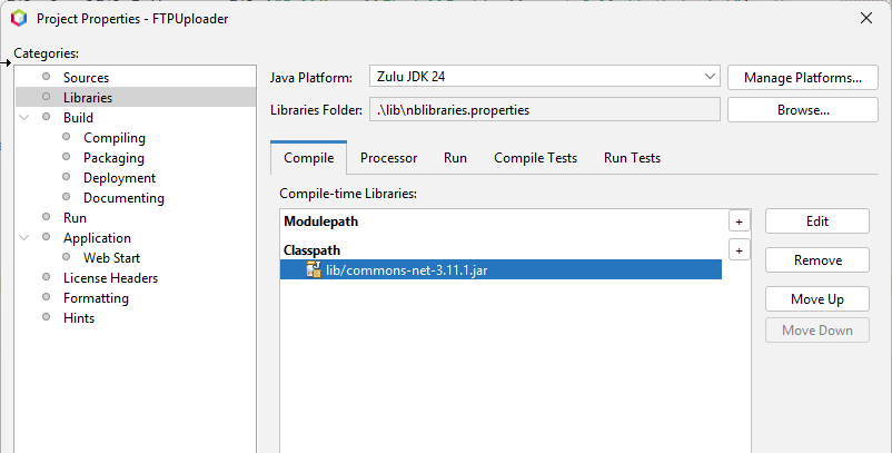 * คุณจำเป็นต้องเพิ่ม dependency ของ Apache Commons Net ในโปรเจกต์ของคุณก่อน
